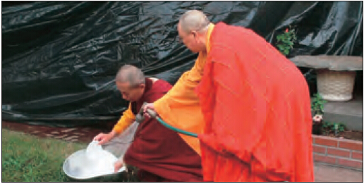 隆慧大師和多杰覺拔尊者當眾清洗瓷盤