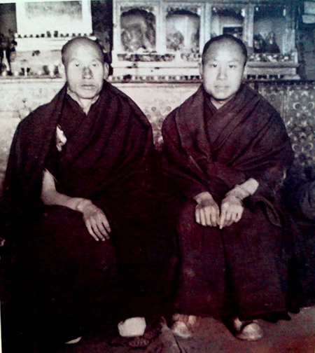 ▲洛桑珍珠(右)與多杰格西弟子合影於哲蚌寺
